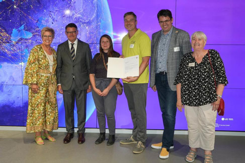 v.l.n.r.: Daniel Thomas, Cornelia Wicht-Gerhardt, Thomas Iser, Petra Reich, Jürgen Schomburg, Jasmine Imeraj, Dominik Imeraj, Oberbürgermeister Dr. Felix Schwenke und Simon Isser.